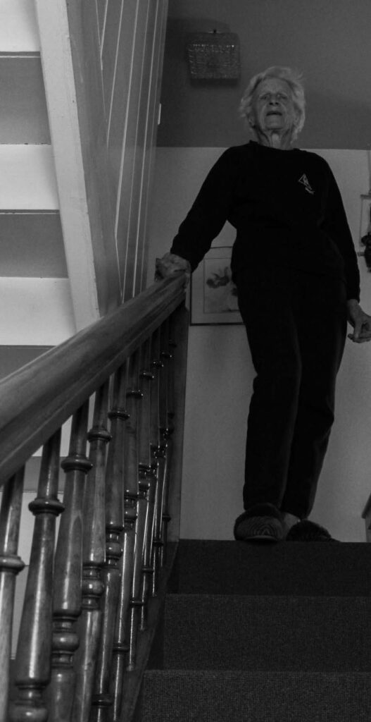 Meine Grossmutter erzählt mir, dass sie immer die Treppe in ihrem Wohnhaus geht – Stufe für Stufe, nach oben und nach unten (E. Fust, mündliche Aussage). Ihr treuer Begleiter ist der Handlauf, der sie sicher stützt. Doch leider endet der Handlauf bereits nach den ersten acht Stufen, bevor er sie bis zur letzten Stufe führt, die zum Eingang der Wohnung führt. Meine Grossmutter weiss genau, dass es neun Stufen gibt, dass die vorletzte Stufe die achte und die letzte Stufe die siebte ist (E. Fust, mündliche Aussage). Diese Zählung hilft ihr, sich zu orientieren. Doch der fehlende Handlauf an der letzten Stufe ist ein echtes Problem.