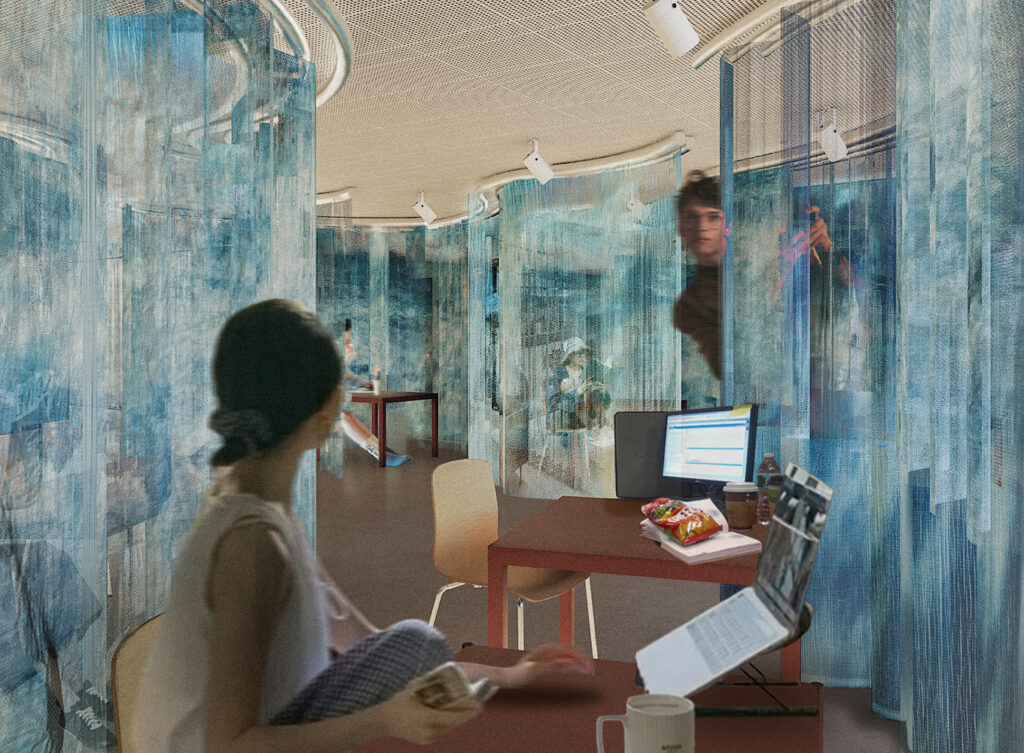 Im Dialog zwischen Gestaltung und Psychologie entwickeln die Studierenden räumliche Szenarien, die Offenheit, Resonanz und soziale Vielfalt fördern. Sie lernen, theoretische Konzepte in konkrete räumliche Strategien zu übersetzen – und Atmosphären gezielt zu gestalten.
